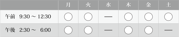 休診日 水曜日・土曜日午後・日曜日・祭日